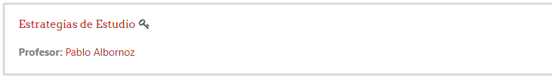 Luego, en la página principal, comenzás a navegar hacia el Aula donde quieras acceder y matricularte. Busca por carrera de grado, posgrado o capacitación permanente (depende sea el caso), luego carrera, año y la materia. Una vez que estas ahí puede aparecerte un icono de una llave al lado del aula virtual.
