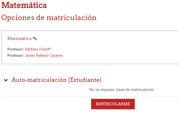 Una vez que tengas la clave, o si no la necesitas, haces clic en el botón matricularme listo ya estás matriculado en el curso y podés acceder a todo lo que está en el aula.
